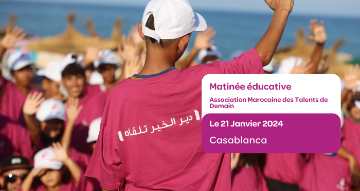 L'Association Marocaine des Talents de Demain organise chaque dimanche, à partir de 10 heures du matin, des matinées dédiées aux enfants. Le programme d'activités comprend divers ateliers bénéfiques, offrant ainsi aux enfants une expérience éducative enrichissante.