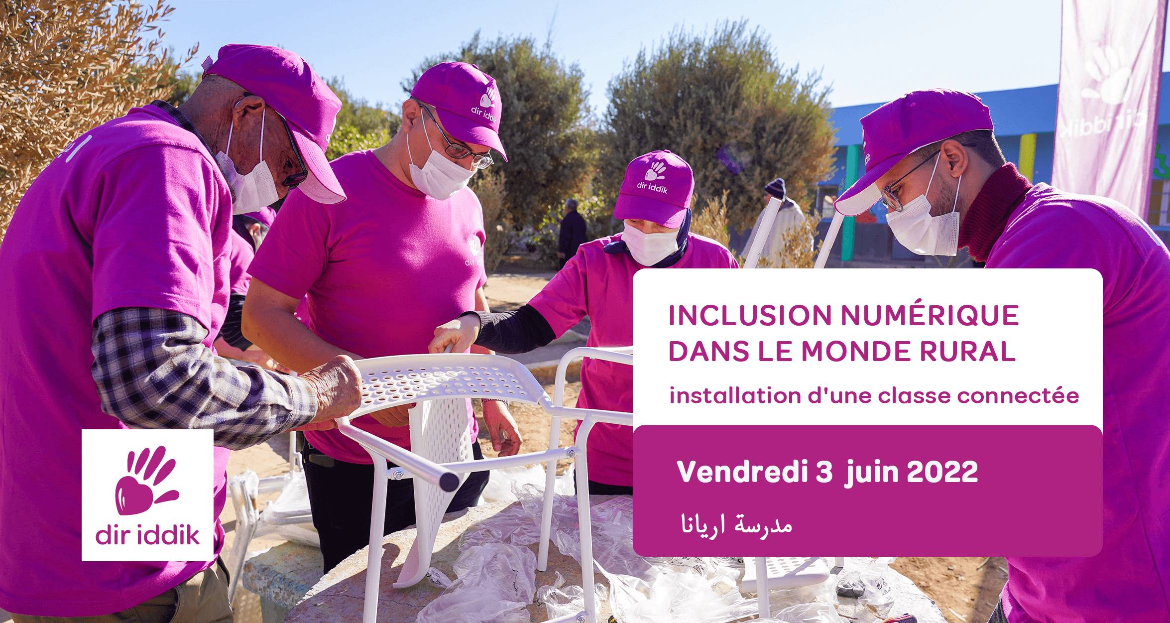 وصول المتطوعين و التسجيل جلسة تحضيرية و توزيع المهام تنظيف القسم وضع الأثاث و الحواسيب و المعدات الرقمية إستقبال و قيادة ورشات مع الأطفال ورشة حماية الأطفال على الإنترنت