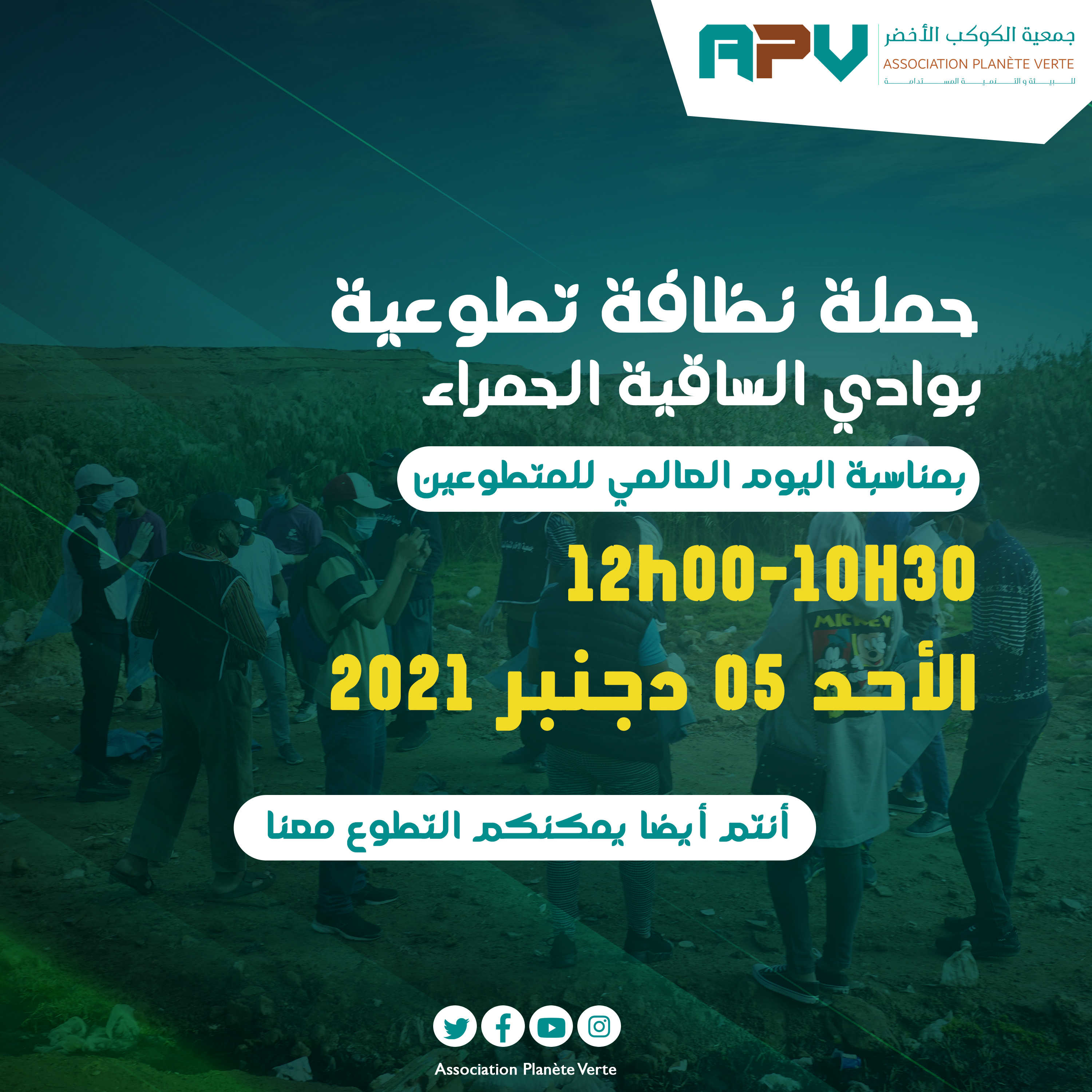 تنظم جمعية الكوكب الأخضر للبيئة والتنمية المستدامة حملة نظافة تطوعية بوادي الساقية الحمراء بمدينة العيون، الهدف من هذه المبادرة هو نشر الوعي على ضرورة الحفاظ على البيئة.