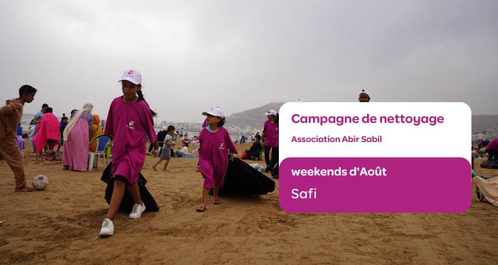 تنظم جمعية عابر سبيل حملة تنظيف في مدينة آسفي تتضمن ورشات عمل لفرز النفايات وإعادة تدويرها. الهدف من هذه المبادرة هو حشد متطوعي المدينة للمشاركة في عملية تنظيف جماعي ورفع مستوى الوعي بين عامة الناس حول حماية البيئة الساحلية.