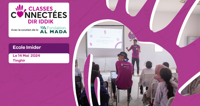 يعود مشروع " Classes connectées Dir iddik" في نسخته الجديدة لتجهيز أقسام المدارس الابتدائية في العالم القروي ب 12 جهة في المغرب. يهدف هذا المشروع ، المدعوم من مؤسسة المدى و بشراكة مع مناجم و وزارة التربية الوطنية والتعليم الأولي والرياضة، إلى تجهيز مئات المدارس والوصول إلى أكثر من 30،000 مستفيد.