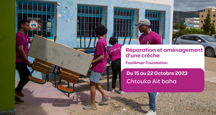 Failkhair Foundation dévoile son projet "ALF" qui vise la rénovation d'une crèche à Chrouk Ait Baha. Cette initiative englobe diverses actions telles que l'aménagement paysager, la peinture, etc.