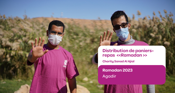 بمناسبة شهر رمضان المبارك توزع مؤسسة سند الأجيال الخيرية في مدينة أغادير 1000 وجبة افطار يومياً لفائدة الفئات الأكثر حرماناً.