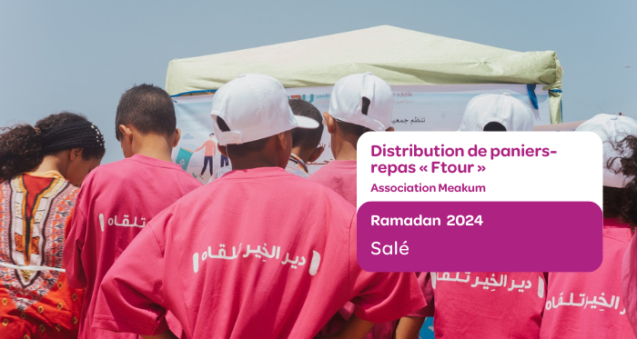 خلال شهر رمضان المبارك، تعمل جمعية "معاكم" جاهدةً على تقديم الدعم الأساسي لأهالي مدينة سلا. حيث يتم توزيع سلال وجبات "فطور" المصممة خصيصاً كل يوم للأشخاص الأكثر احتياجاً.