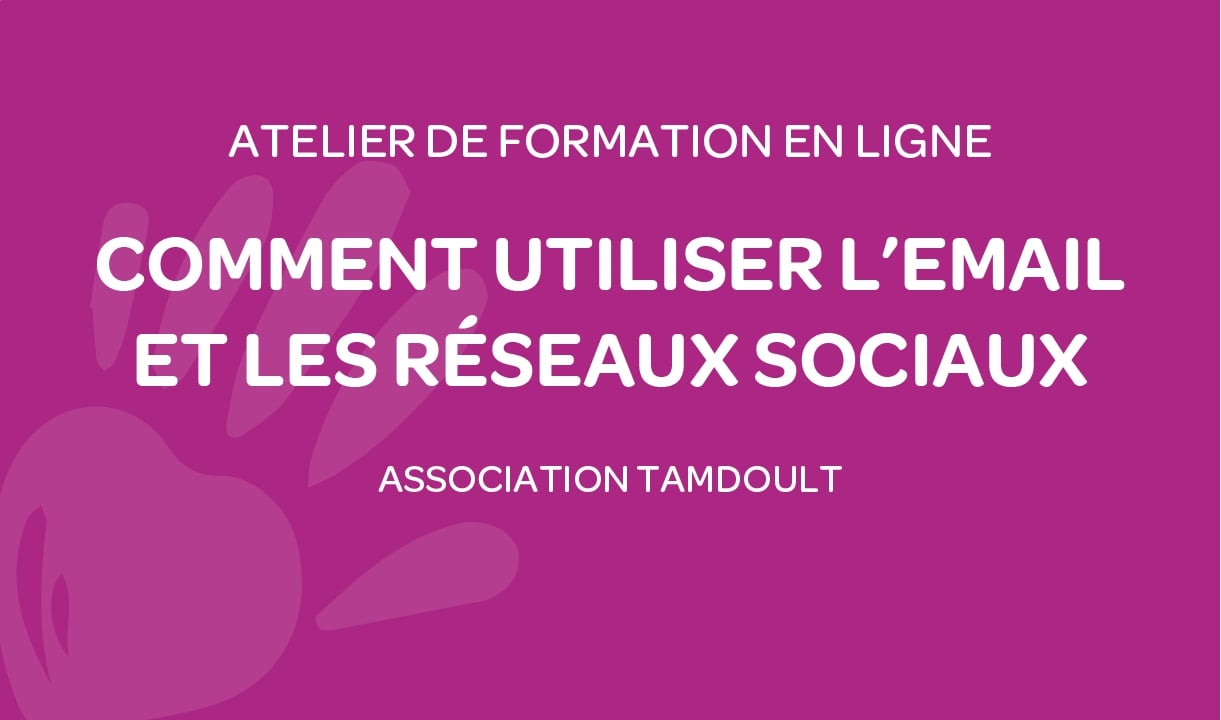 Dans le cadre des formations en ligne en soft skills organisées par l’association Tamdoult pour la culture et le développement, l’atelier « Comment utiliser l’email et les réseaux sociaux ? » aura lieu le 25 Août auprès des jeunes âgés de 18 ans et plus.