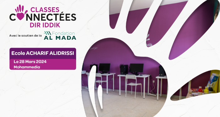 Le projet Classes Connectées Dir iddik revient dans une nouvelle édition pour équiper et animer des salles multimédias au sein d'écoles primaires situées en milieu rural dans les 12 régions du Maroc. Soutenu par la Fondation Al Mada, et en partenariat avec le Ministère de l’Education Nationale, du Préscolaire et des Sports, cet ambitieux projet vise à équiper une centaine d'écoles et toucher plus de 30.000 jeunes bénéficiaires.