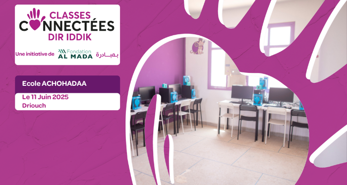 Le projet Classes Connectées Dir iddik revient dans une nouvelle édition pour équiper et animer des salles multimédias au sein d'écoles primaires situées en milieu rural dans les 12 régions du Maroc. Soutenu par la Fondation Al Mada, en partenariat avec le Ministère de l’Education Nationale, du Préscolaire et des Sports, cet ambitieux projet vise à équiper une centaine d'écoles et toucher plus de 30.000 jeunes bénéficiaires.