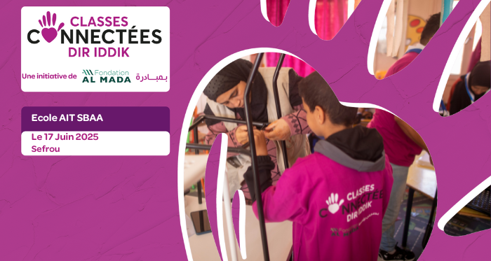 Le projet Classes Connectées Dir iddik revient dans une nouvelle édition pour équiper et animer des salles multimédias au sein d'écoles primaires situées en milieu rural dans les 12 régions du Maroc. Soutenu par la Fondation Al Mada, en partenariat avec le Ministère de l’Education Nationale, du Préscolaire et des Sports, cet ambitieux projet vise à équiper une centaine d'écoles et toucher plus de 30.000 jeunes bénéficiaires.