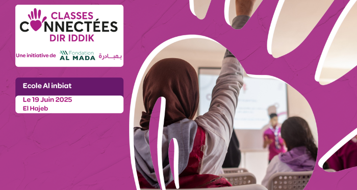 Le projet Classes Connectées Dir iddik revient dans une nouvelle édition pour équiper et animer des salles multimédias au sein d'écoles primaires situées en milieu rural dans les 12 régions du Maroc. Soutenu par la Fondation Al Mada, en partenariat avec le Ministère de l’Education Nationale, du Préscolaire et des Sports, cet ambitieux projet vise à équiper une centaine d'écoles et toucher plus de 30.000 jeunes bénéficiaires.