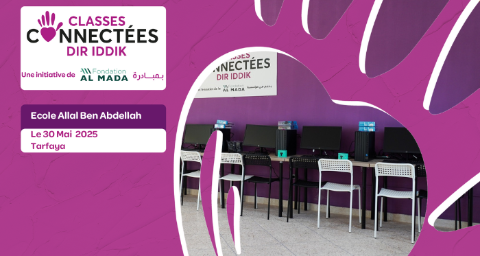 Le projet Classes Connectées Dir iddik revient dans une nouvelle édition pour équiper et animer des salles multimédias au sein d'écoles primaires situées en milieu rural dans les 12 régions du Maroc. Soutenu par la Fondation Al Mada, et en partenariat avec Nareva et le Ministère de l’Education Nationale, du Préscolaire et des Sports, cet ambitieux projet vise à équiper une centaine d'écoles et toucher plus de 30.000 jeunes bénéficiaires.