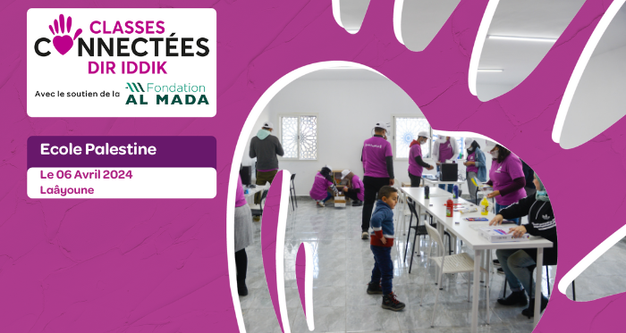 Vous souhaitez participer à la création d'une salle multimédia dans l'école Palestine à Laayoune? Rendez-vous donc le 06/04/2024 à partir de 09h00 du matin !
