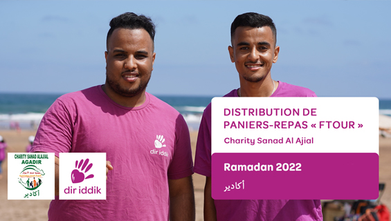 À L’occasion du mois sacré de Ramadan, Charity Sanad Al Ajial distribue dans la ville d’Agadir 1000 panier-repas « Ftour » chaque jour au profit des personnes les plus démunies.