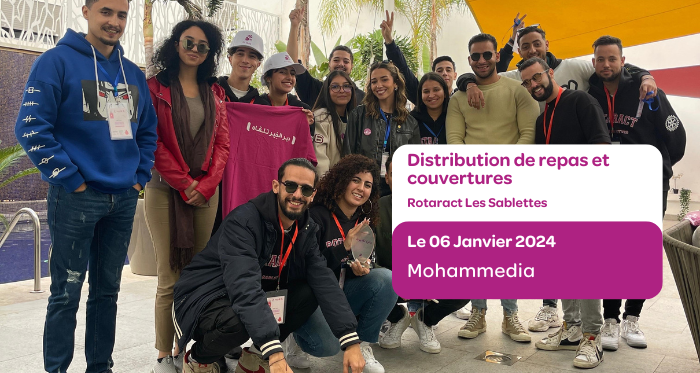 L'Association Rotaract Les Sablettes initie une démarche solidaire en faveur des sans-abri, visant à distribuer des repas et des couvertures dans les quartiers de Mohammedia, dans le but d'apporter un soutien essentiel aux personnes en situation de précarité.